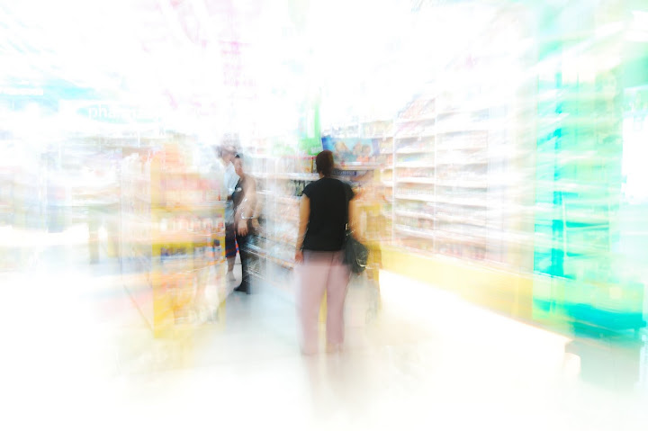 I like this shot very much, but everyone didn;t like the fact that it was overexposed. My classmates also suggested that I take the zoom shot right down the middle of an aisle, with one subject pushing her trolley coming towards me, I will probably try to do this, with normal exposure. (: